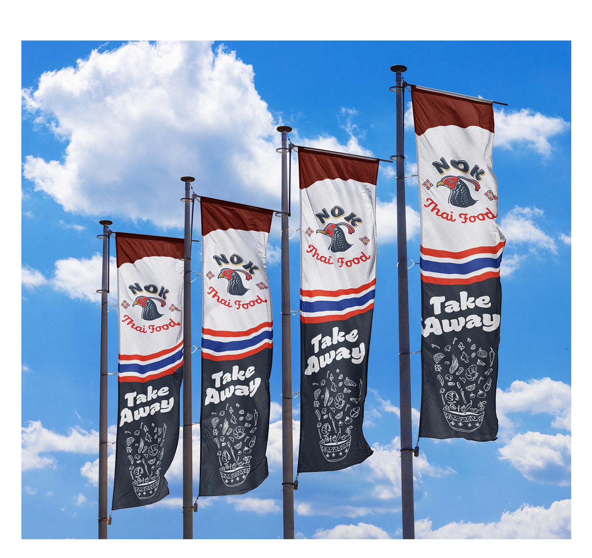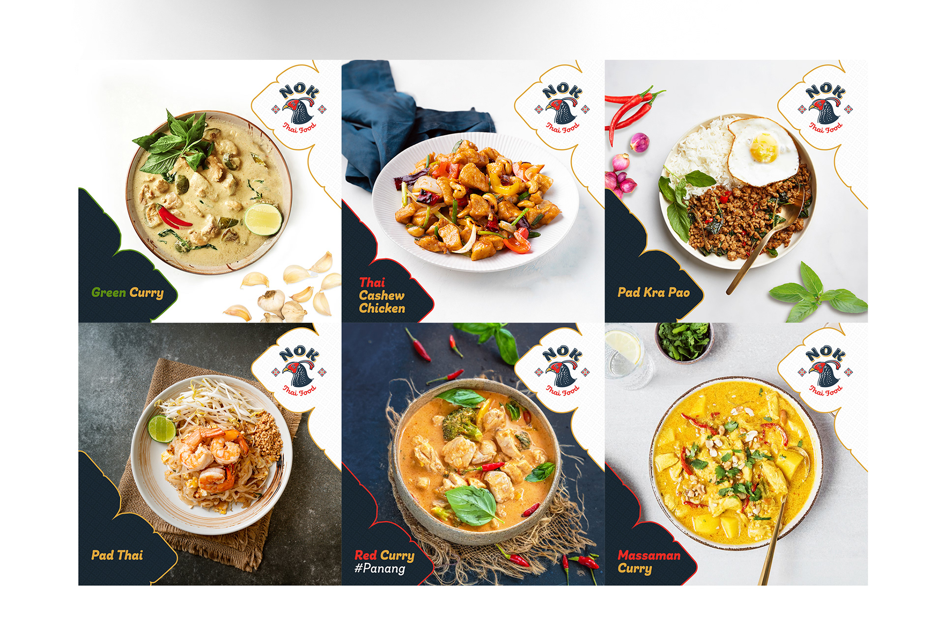 Nok Thai Food Logo, and Visual Identity.